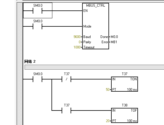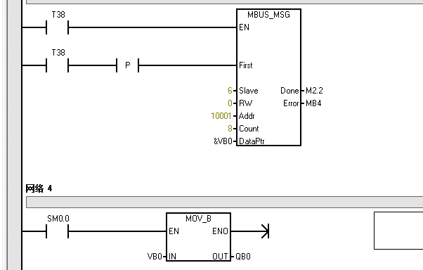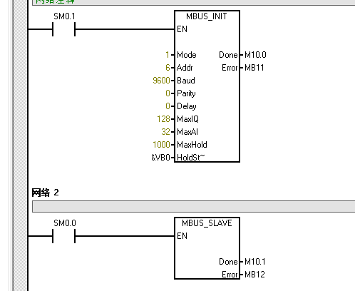 在做簡(jiǎn)單的調(diào)試,所以做的簡(jiǎn)單程序,主站讀取從站i0.0-i0.7八個(gè)位的狀態(tài)即可。modbus庫(kù)內(nèi)存用的推薦已經(jīng)是vb1288開始的內(nèi)存了。