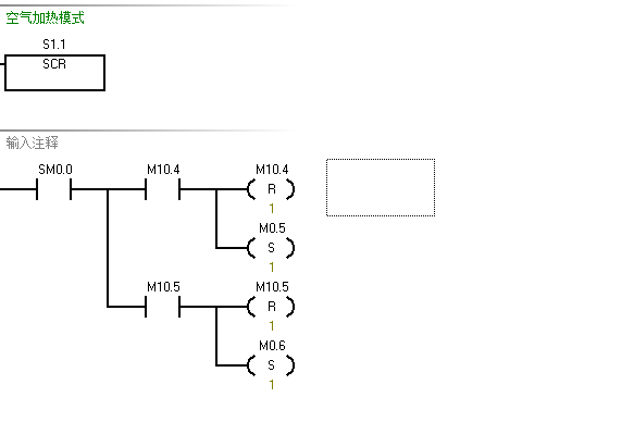其中M10.O4表示的是壓縮機(jī),M0.5表示:停壓縮機(jī)一轉(zhuǎn)換,然后這是對(duì)空氣進(jìn)行加熱的程序,我想問問你這里為什么M0.4一接通又要對(duì)其進(jìn)行復(fù)位呢?