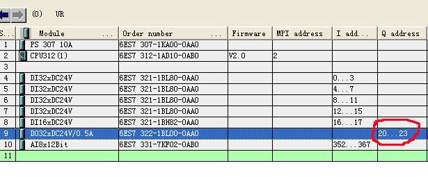 在我這臺(tái)機(jī)上給出的地址是Q20.0~Q23.7,在另外一臺(tái)機(jī)上組態(tài)給出的地址是Q17.0~Q19.7