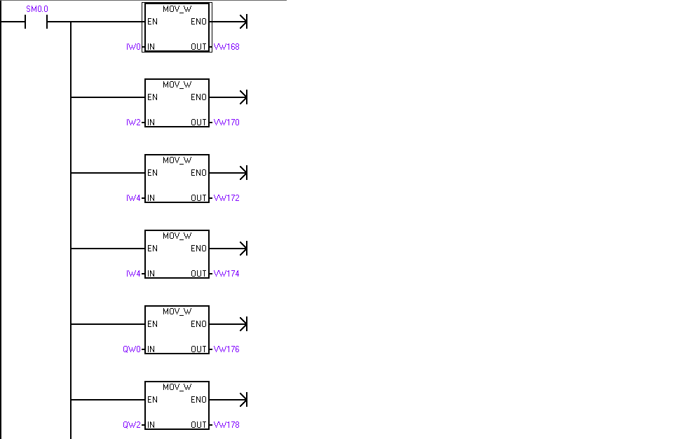 是輸入信號IW0   指I0.0到i1.7    16個點的信號,傳送到