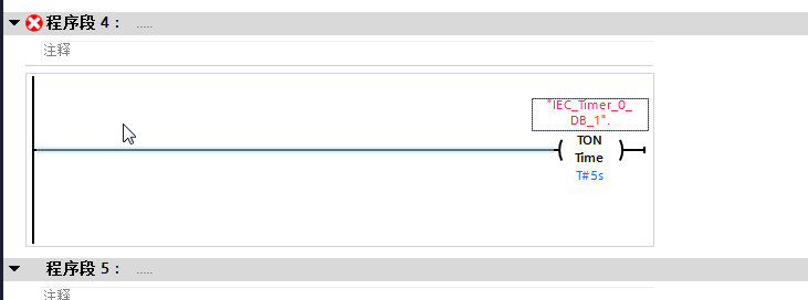 我新建了一個DB塊,再新建數據“AA”數據類型IEC_TIMER,再TON選擇這個數據后,顯示紅色,