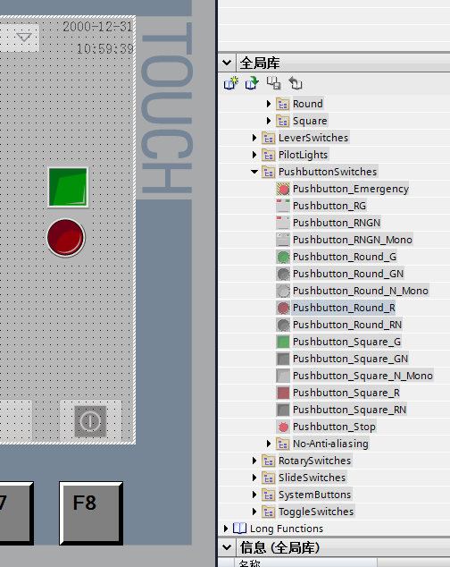 在編輯的時候對于按鈕,指示燈類的原件找不不到可用的庫(沒有可用的原件)來使用,感覺很不適用,以前用過威綸,施耐德的屏都有現(xiàn)有的按鈕類使用只需改變值就行了,西門子KTP1200 Basic 觸摸屏不知道在 哪找,各位有什么還的方法請幫個幫