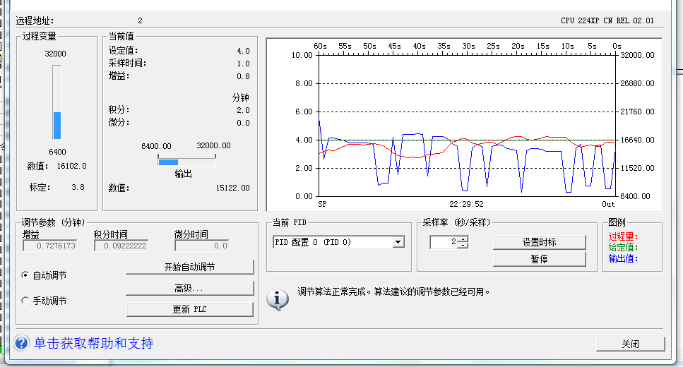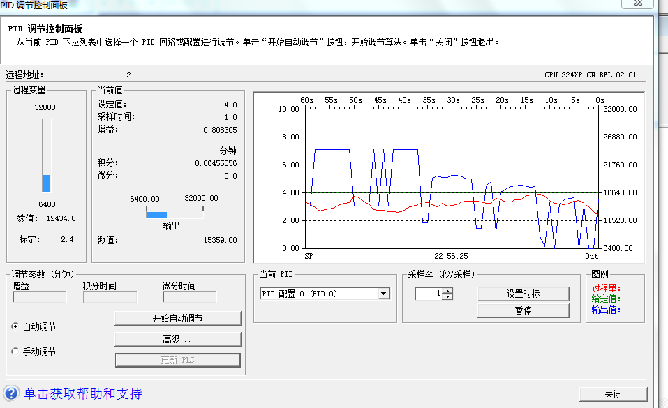 如同,使用自帶PID向導,自動計算出來的參數波動太大,幾乎不能用,懷疑是采樣值有點大,自動計算時候采樣值最小是1s,而手動編程卻可以設定為0.1s。
