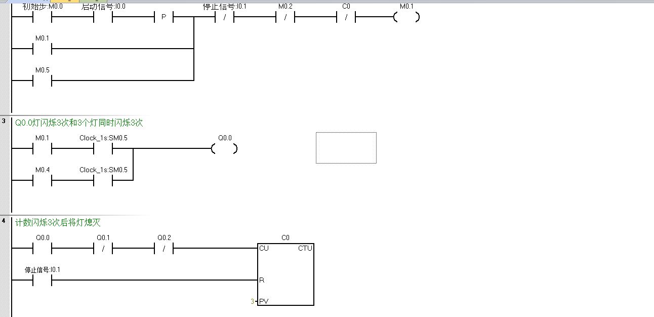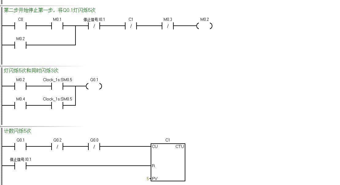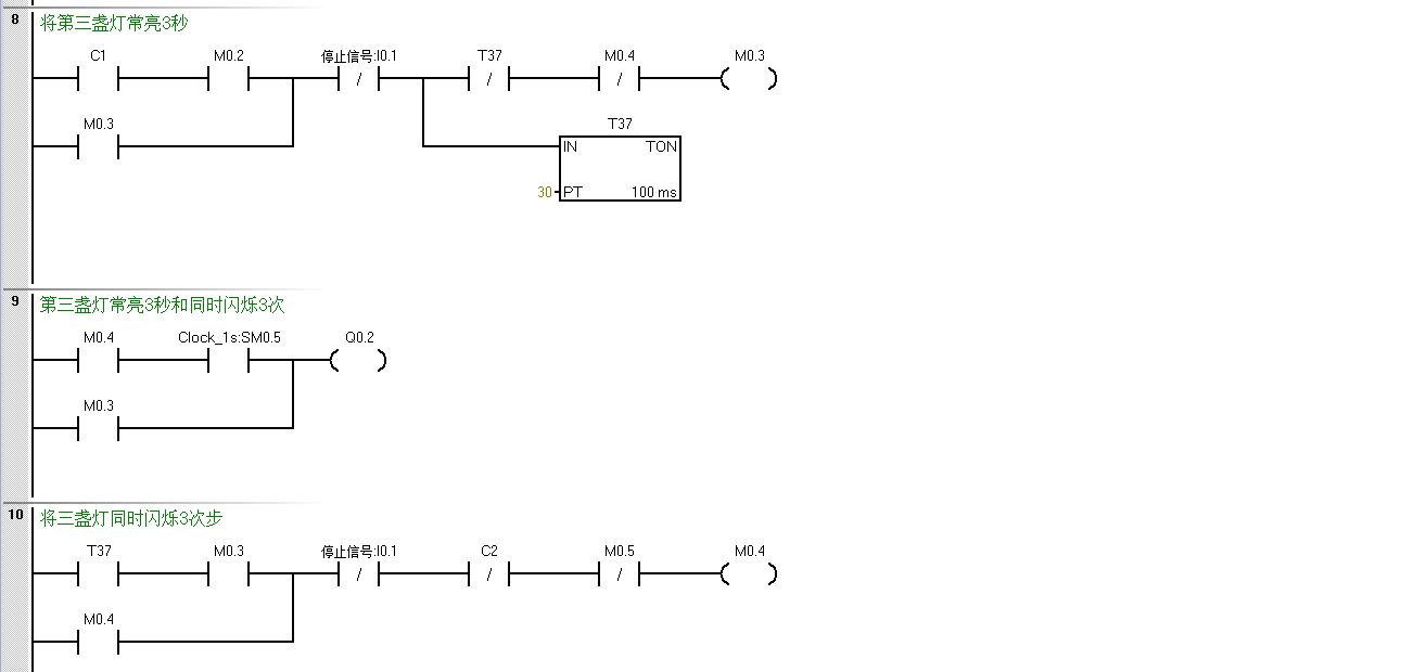 因為你的計數(shù)方法有問題,最后一次時,程序里一接通,計數(shù)器就到了計數(shù)次數(shù),所以馬上就停掉了,而表現(xiàn)在PLC外面就是最后一次的燈沒有亮。解決的方法是1,增加計數(shù)的次數(shù)多1次。2.用燈的下降沿來計數(shù)。