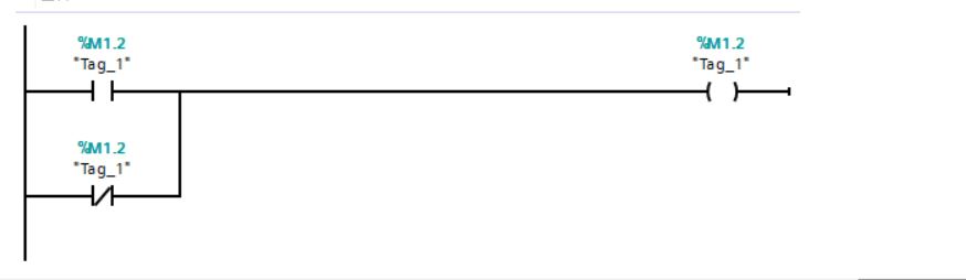 西門子S7-300的需要自己寫, M1.2的常開點和常閉點 并聯后,驅動輸出 M1.2就行了。 |