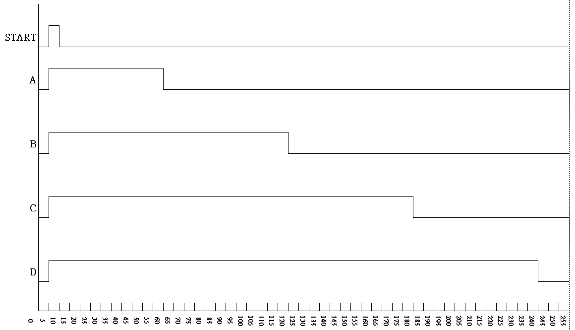 只有一個啟動按鈕,四個電磁閥,沒有其他輸入信號。