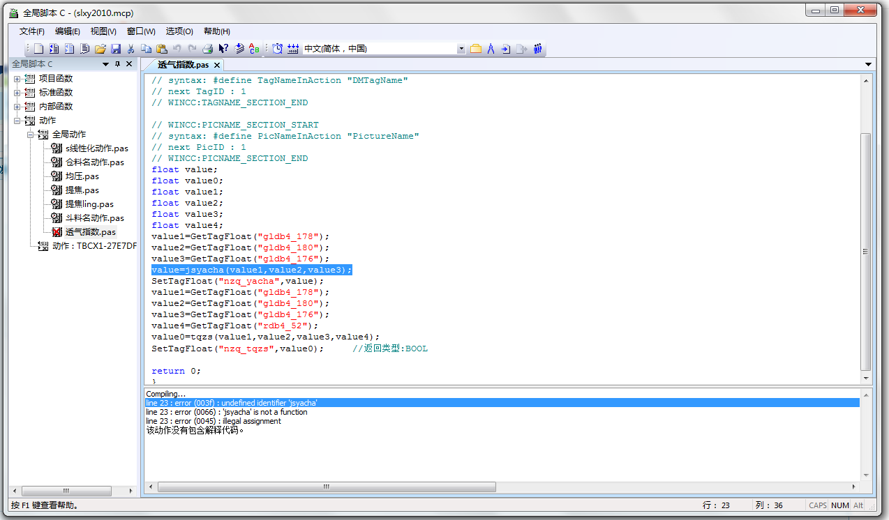 wincc7.3全局動作遇到問題,編譯不過。新手求助