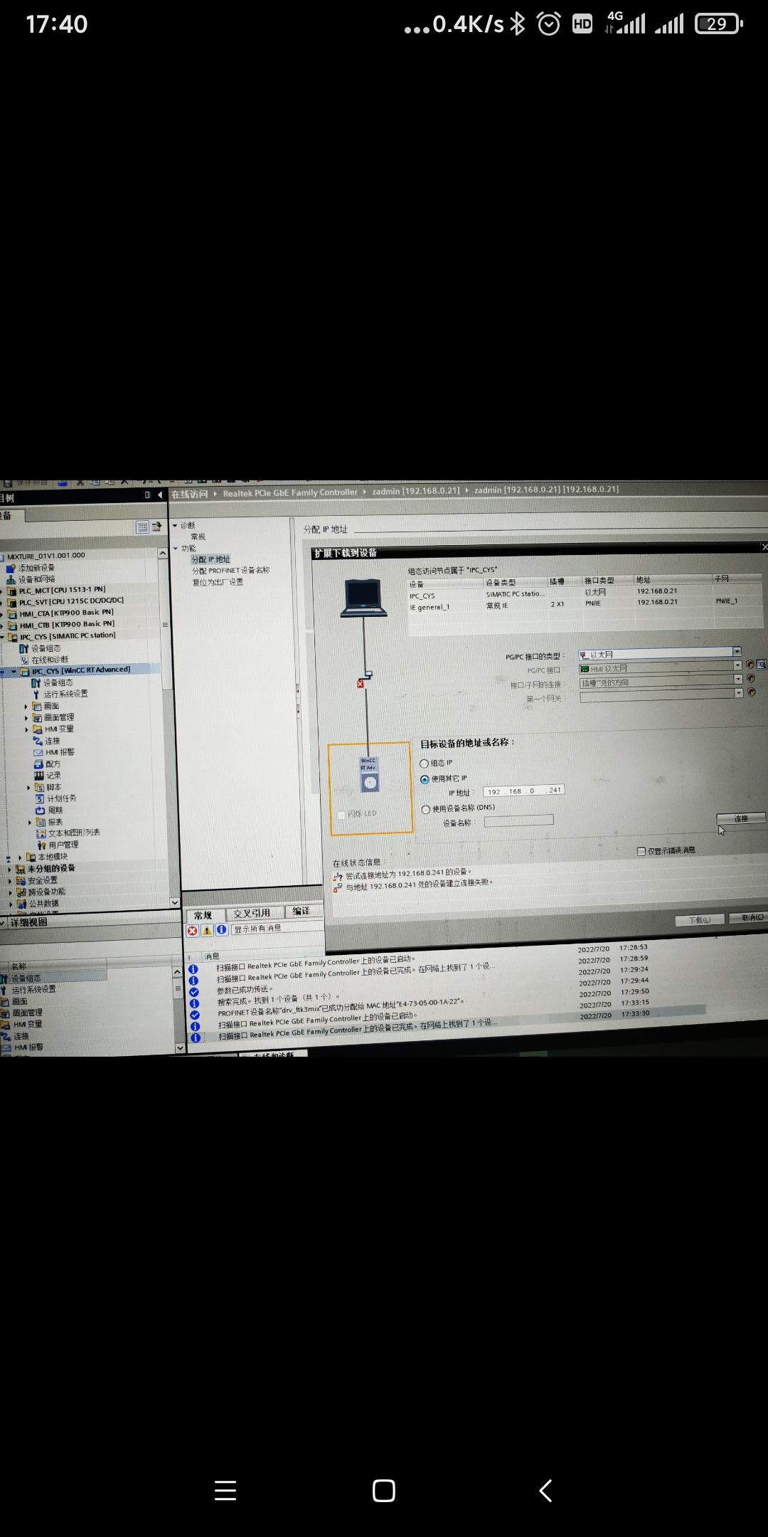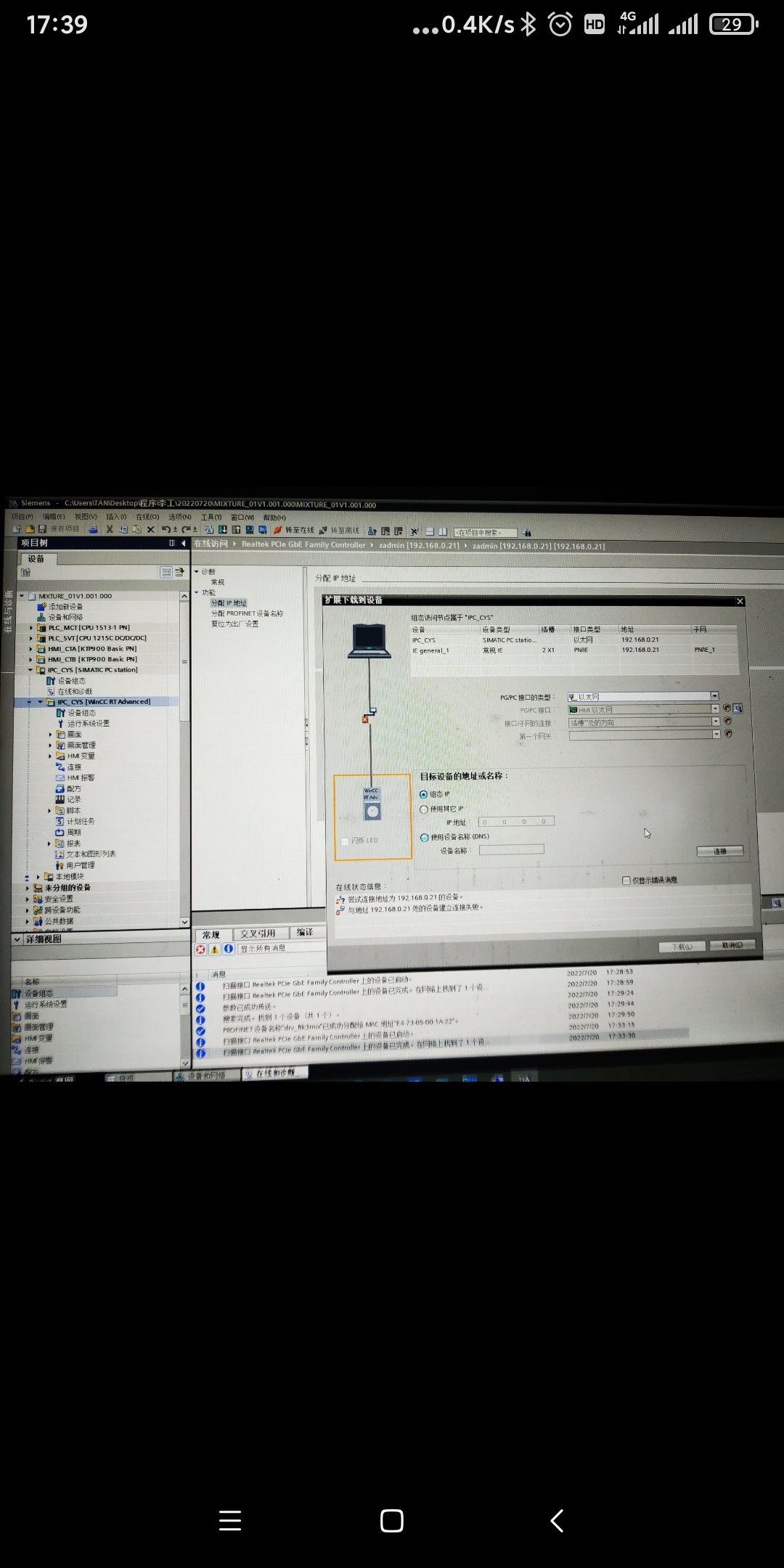 今天第一次往工控機里面下載觸摸屏程序,居然連不上?西門子軟件是公司人員安裝的,發貨出差項目工地這邊下載程序遇到問題,下載不了,求大師指點一下!😊