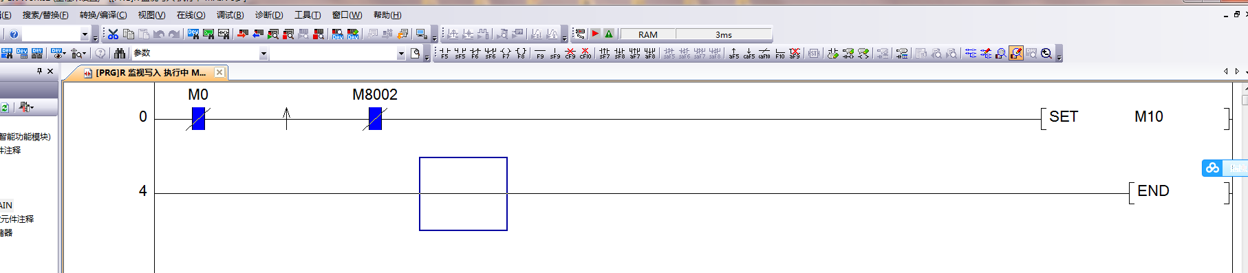 上升沿的前邊就一個常閉觸點的條件,然后上升沿的后邊是一個復位線圈。現在每次上電時都會觸發上升沿,復位線圈會觸發一次,有什么辦法能屏蔽掉每次上電觸發這個上升沿??