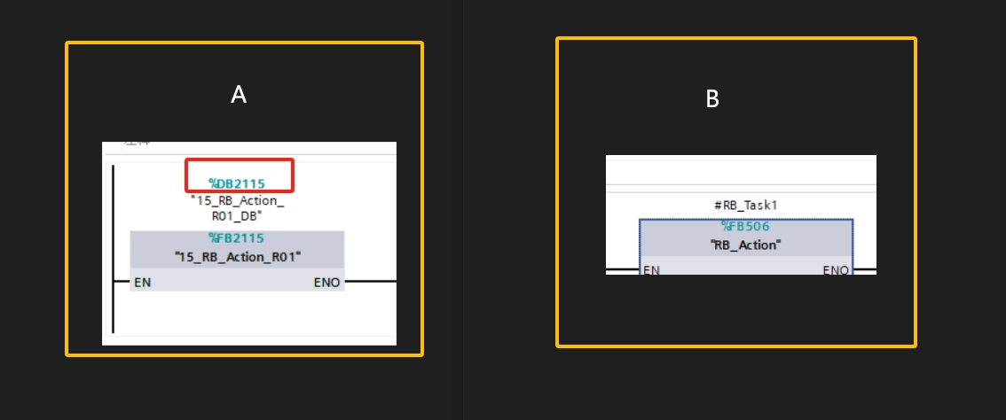 參數實例指以引腳的方式調用DB塊做為背景數據塊。