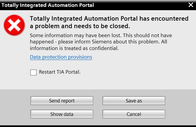 19:46:30 | FAIL!                     StartApplAfter             (TIAP17::[INSTALLDIR]BIN\SIEMENS.AUTOMATION.GENERATOR.FRAMEWORK.EXE)Failed