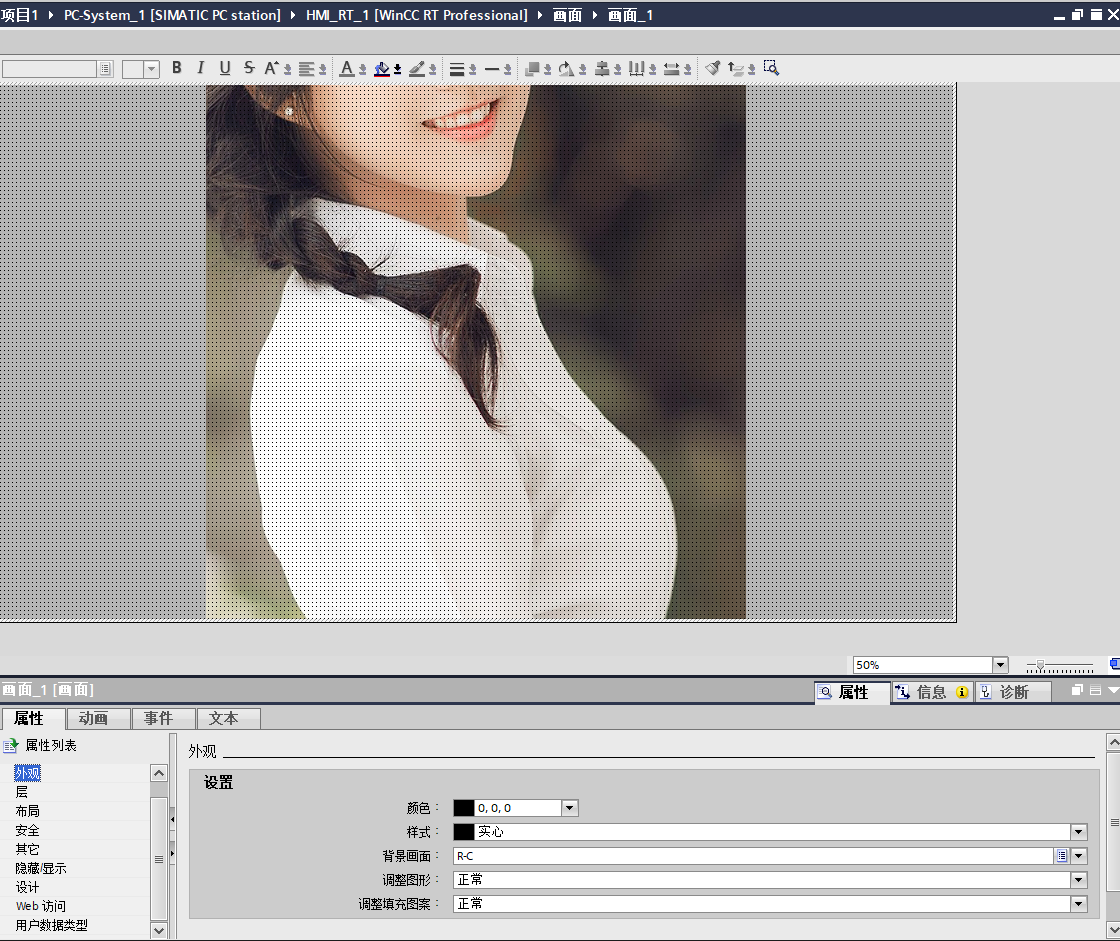 各位大師!博圖WINCC畫面支持加背景圖片嗎  不是添加圖片移到最底層 ,因為移到最底層時,我們在添加其他元件,進行多個元件鼠標圈選  ,底層圖片會影響選擇,隱藏圖片層可以,但是又失去了圖片的參照,總之有背景圖片功能是最好的,不知道WINCC是否能實現這一基本的功能