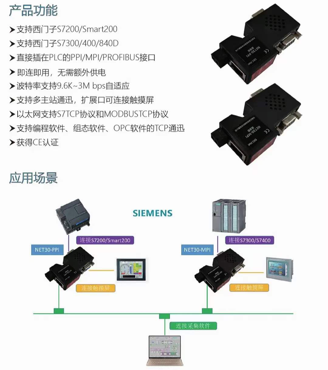 在工廠中,有很多設備使用西門子的PLC加觸摸屏的控制系統,現在要實現工廠信息化的數據采集和集中監控,由于西門子的PPI、MPI通訊口被觸摸屏占用,現在需要擴展通訊接口。