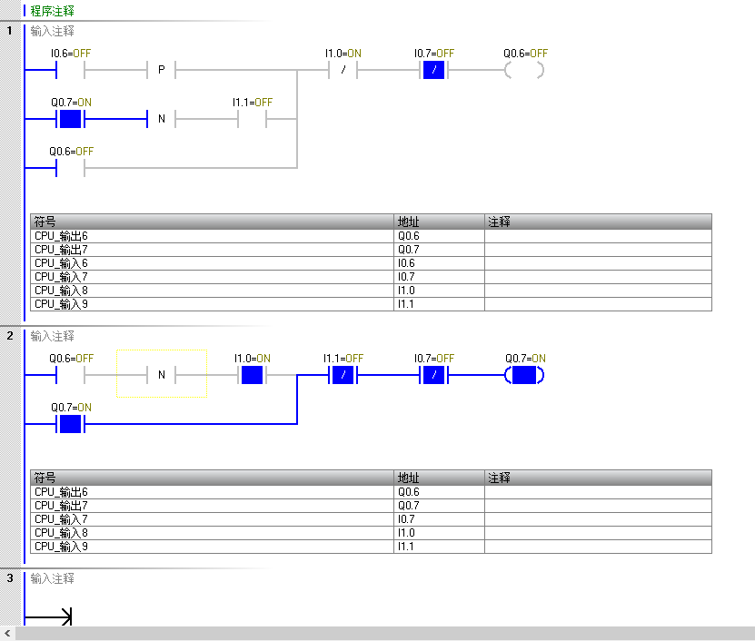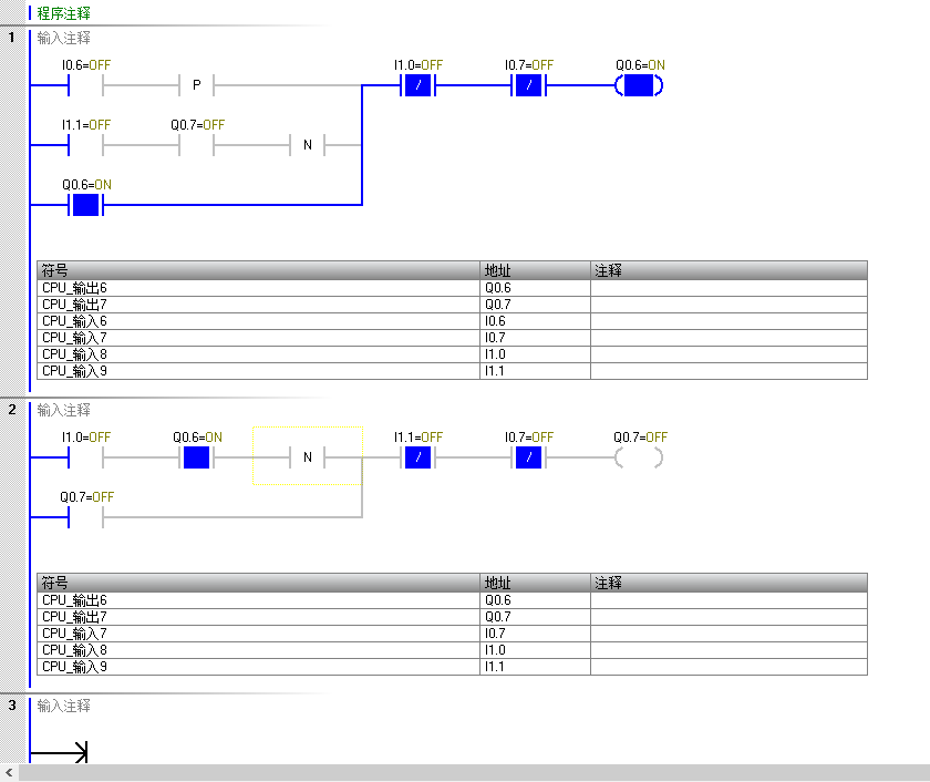 按你這么說,第二組同樣是按I1.0為ON時,Q0.6也是已經(jīng)變OFF了,不會產(chǎn)生下降沿,這時Q0.7也無法自鎖啊,但它自鎖了