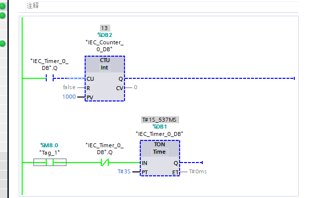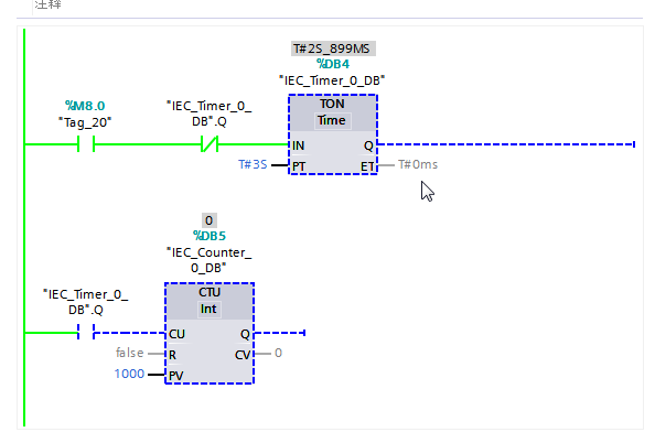 我理解的是,他3s時間到會輸出信號但同時他也會復位也就是變成0秒,這個時候他就沒輸出了,plc掃描從上到下,他先掃到的是復位成0在接通延時