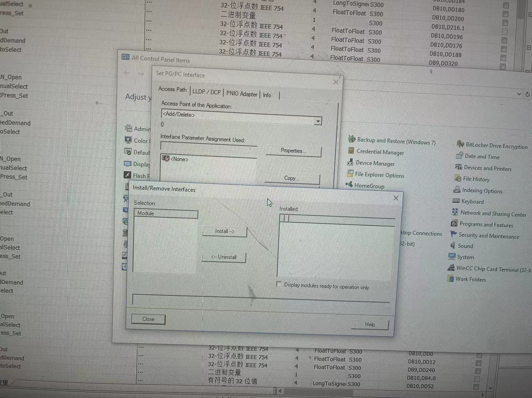 安裝有PCS7 的ES1工程師站電腦,一切運行正常,在安裝PC Access smart軟件后(200smart OPC通訊用),Wincc與S7-400(冗余型CPU)通訊就莫名斷開了,經過初步排查發現只要激活Wincc后,設置的PG/PC接口就全部消失了,懷疑可能是安裝過程中,軟件與PCS7沖突導致。