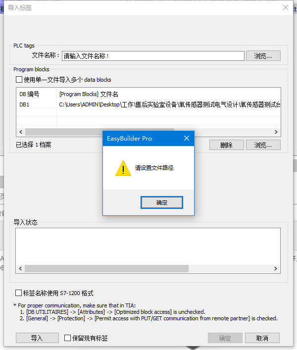 威綸通導入1200的標簽的時候為什么會顯示請設置文件路徑