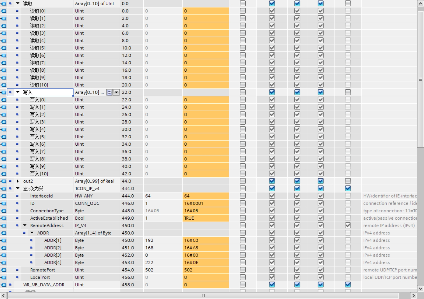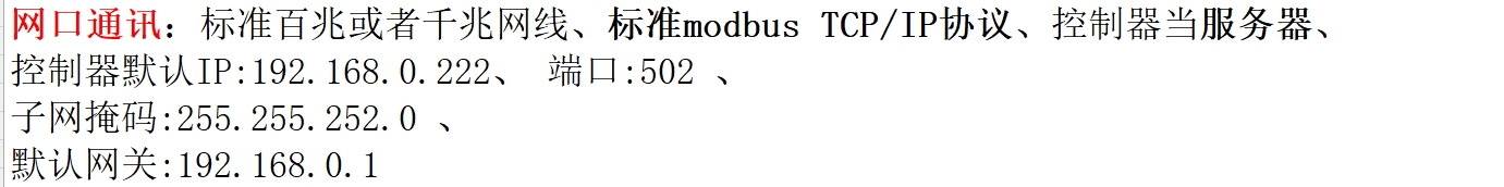 眾為星IP地址:192.168.0.222。端口502,子網掩碼:255.255.252.0