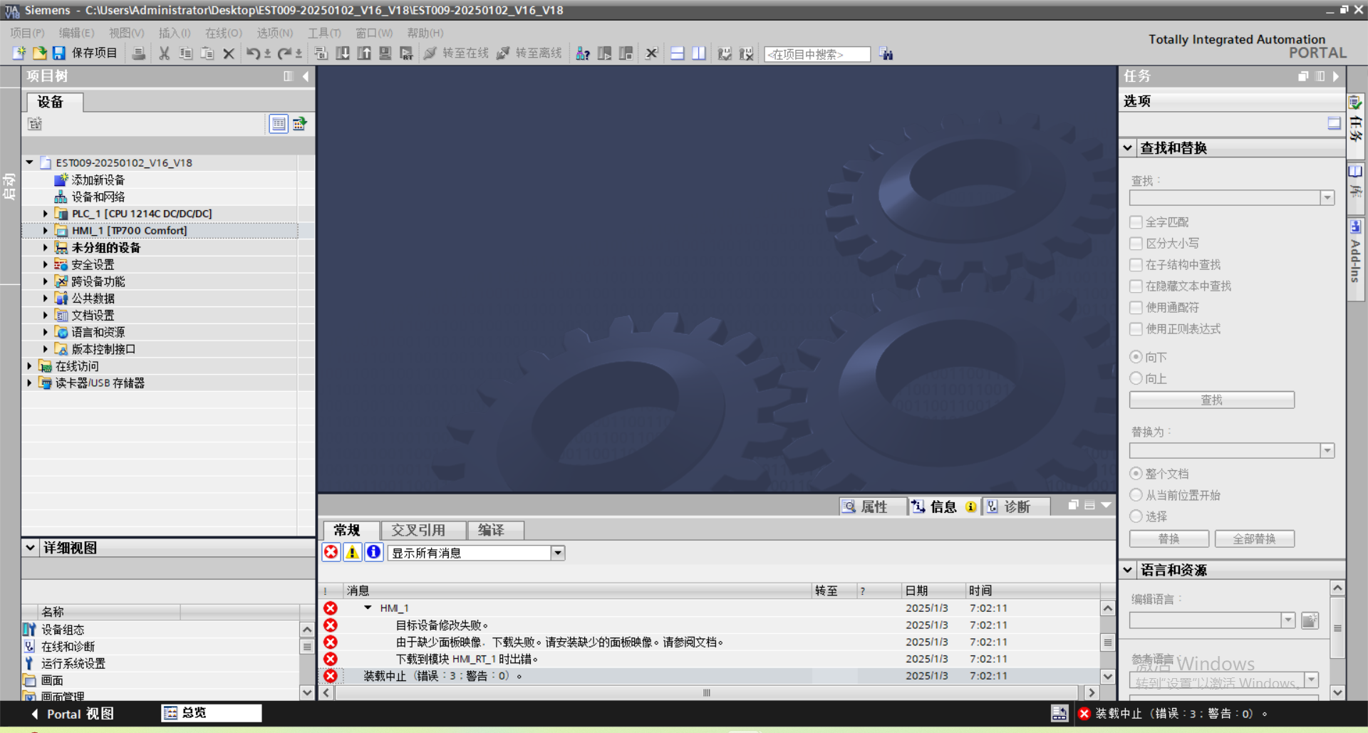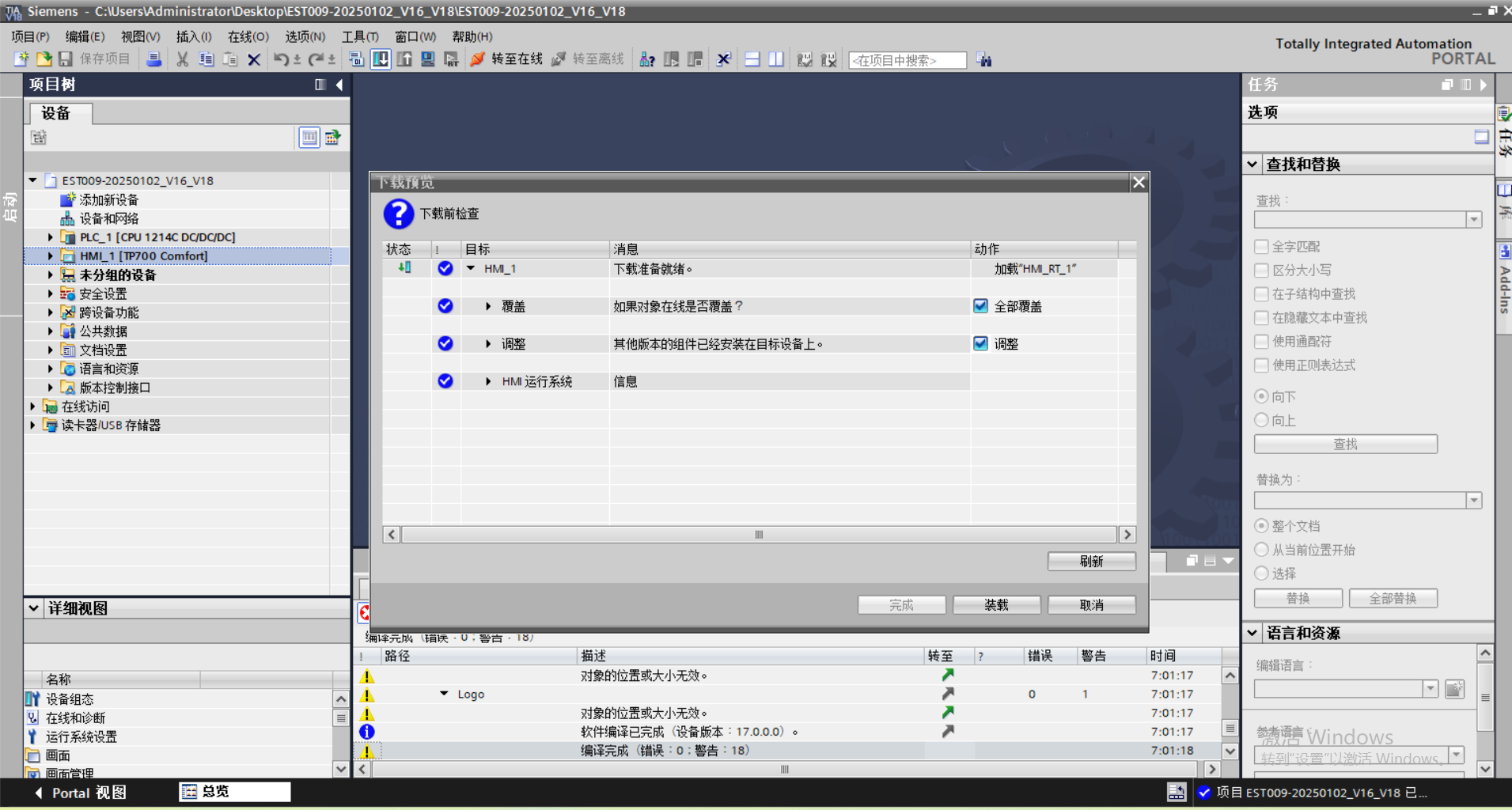 家人們,誰懂啊?用V18下載程序到TP700,屏面板映像V17與軟件相同卻下載失敗報缺少面板映像