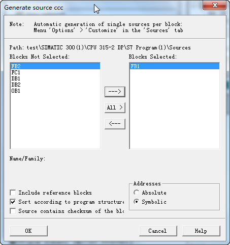 Step3:將需要生成源代碼的FB拖入右邊的框中,確認。