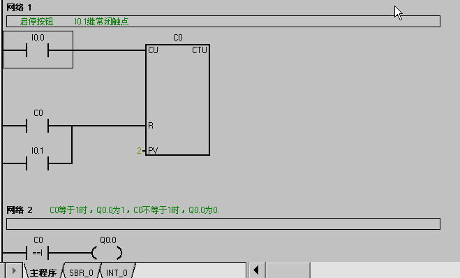 樓主,你的電動機的單按鈕控制程序我看了后怎么有2個按鈕,I0.0和I0.1,不要計數器用I0.0和I0.1串聯就行了。