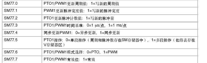 MOVW    16#C3  SMB77    //允許輸出脈沖,PWM輸出,同步更新,時(shí)基為US,允許更新脈寬和周期,