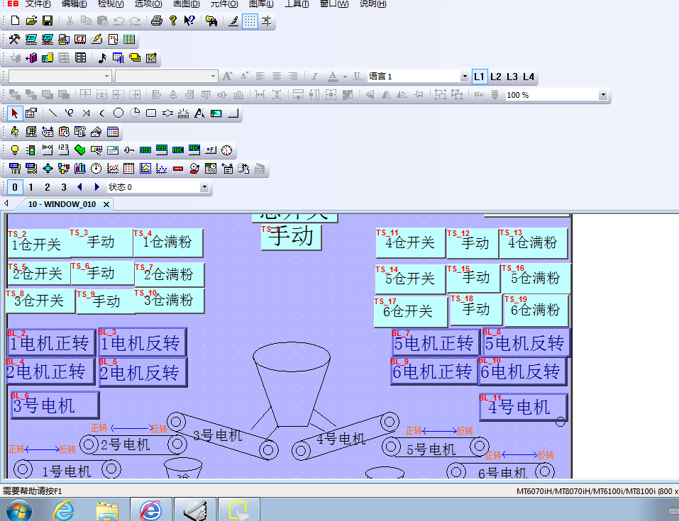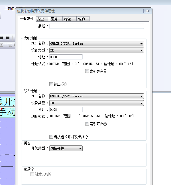 問題是這樣,我有一臺實物的PLC ,在電腦上編好威綸觸摸屏畫面的控制按鈕,控制按鈕寫的是PLC的輸入點地址,電機的動行狀態寫的是PLC輸出地址,當電腦上的觸摸屏畫面與實物PLC通訊后,畫面上的按鈕不能控制PLC,畫面開關屬性我設置為"切換開關",電機狀態與開狀態能正常顯示狀態:“開”與“關”。
