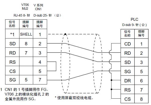 該圖是V7 與Q系列通過串口通訊模塊進行通信的圖。