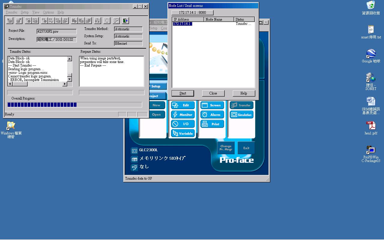 今日將原廠的程式透過GP-Pro/PB3 丟進去時