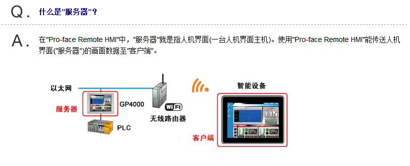 方案:proface4000系列以上,帶網(wǎng)口的觸摸屏。軟件PROEX4.0以上。手機或者智能終端APP: Rrmote HMI.