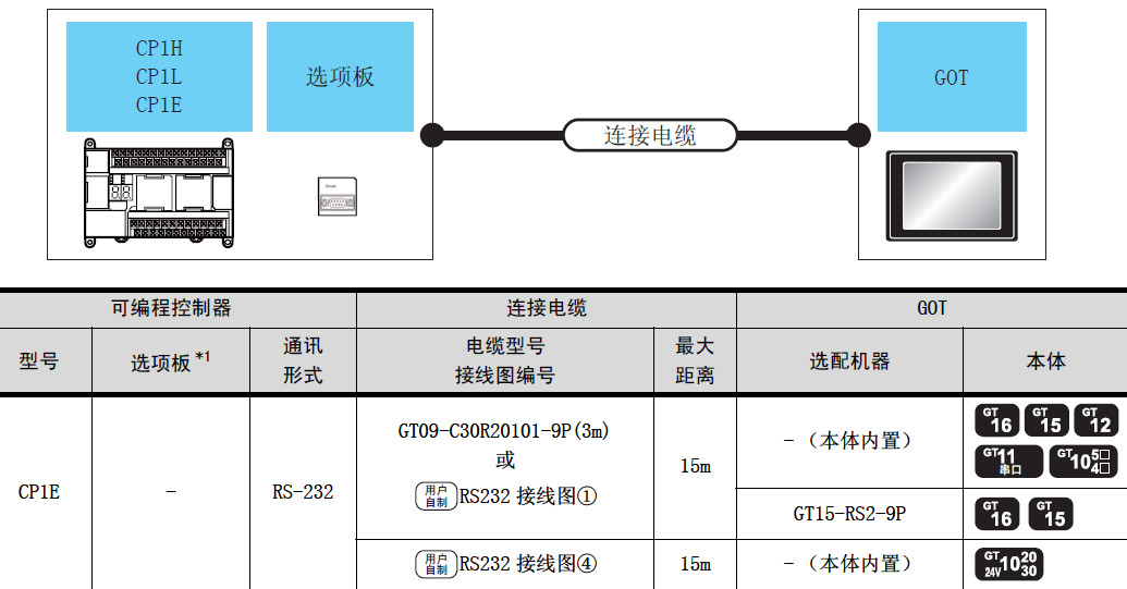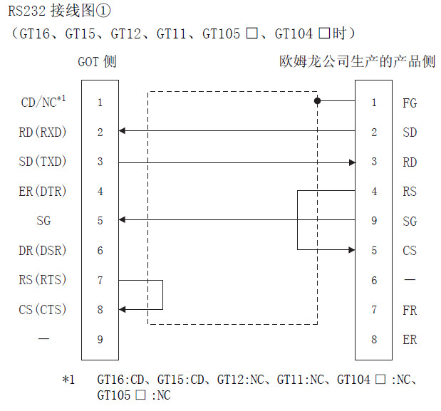 求助各位 朋友   使用三菱GOT1000 人機界面 與歐姆龍 CP1E  PLC 通訊 手里沒有通訊線  準備用九針公母接頭制作個通訊線232的  那位朋友知道怎么做