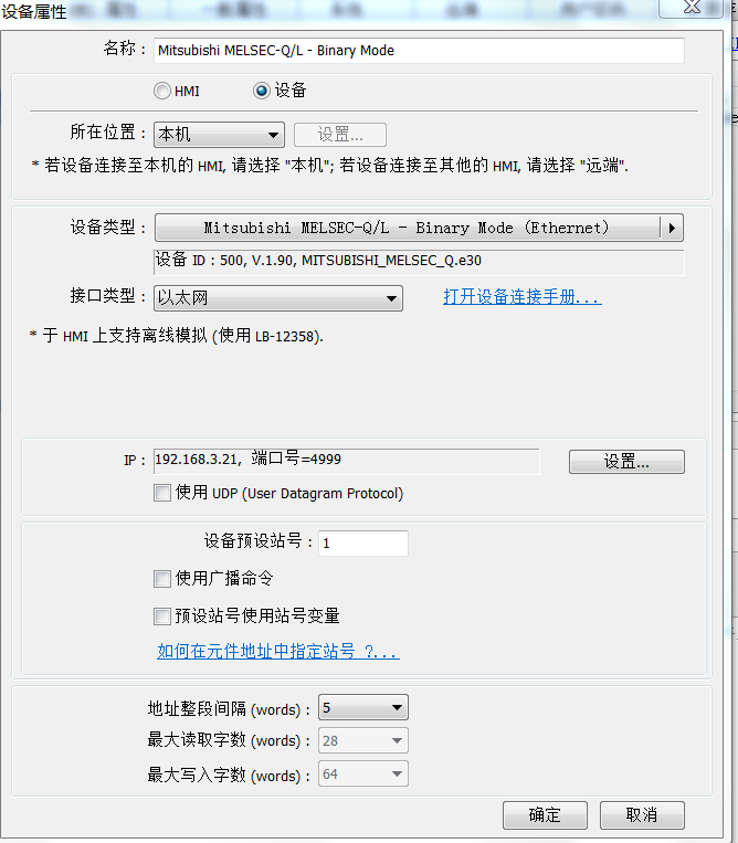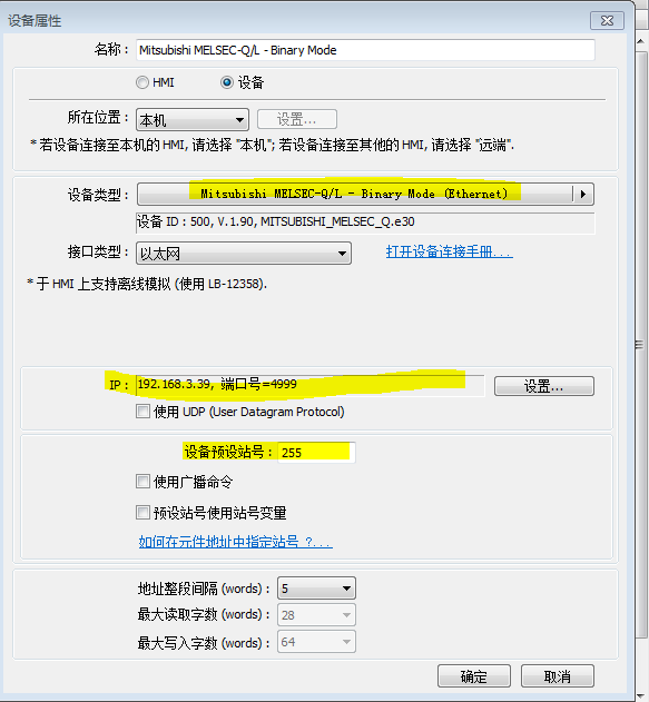 威綸這邊,選三菱Q 以太網,默認255就可以,見圖;