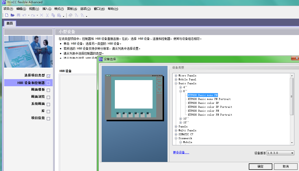 `我現用的WinCC flexible 2008中通訊設置設備類型中找不到KTP600的型號,可是能找到KTP1000。請師傅們賜教