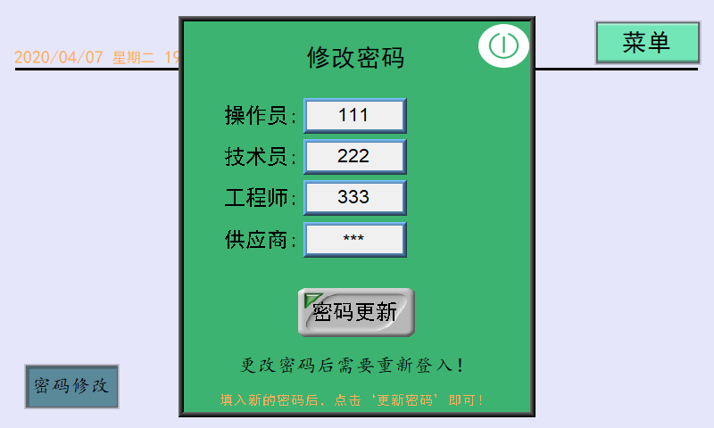 閑暇之余,花時間研究了下威綸觸摸屏的操作界面設計、用戶登入方式、彈出式菜單、簡單密碼修改!由于沒有進過實際項目應用,且看起來花里胡哨!就當和大家互相學習交流了哈!!