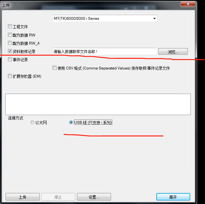 這個只能用USB來上傳的咯(前提要先建立資料取樣)