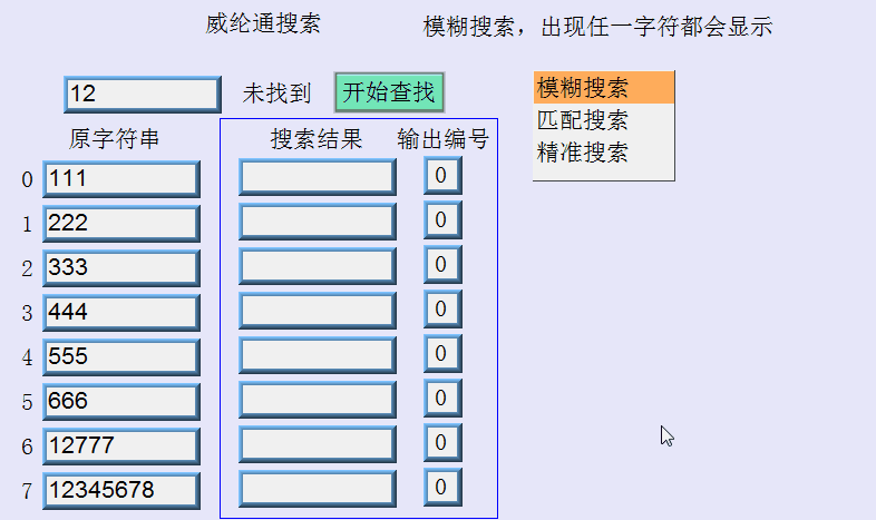 模糊搜索,出現(xiàn)任一字符都會(huì)顯示