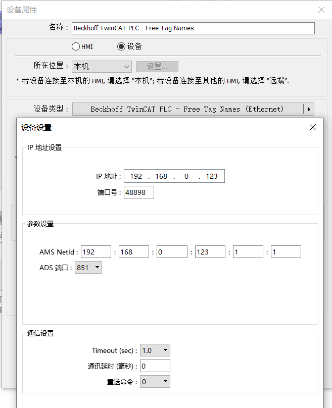 連接PLC與觸摸屏還算順利,按倍福的那個文檔設(shè)置基本就可以了,這里主要說一點,由于我是使用電腦WIN10運行的TwinCAT3,直接連接觸摸屏,