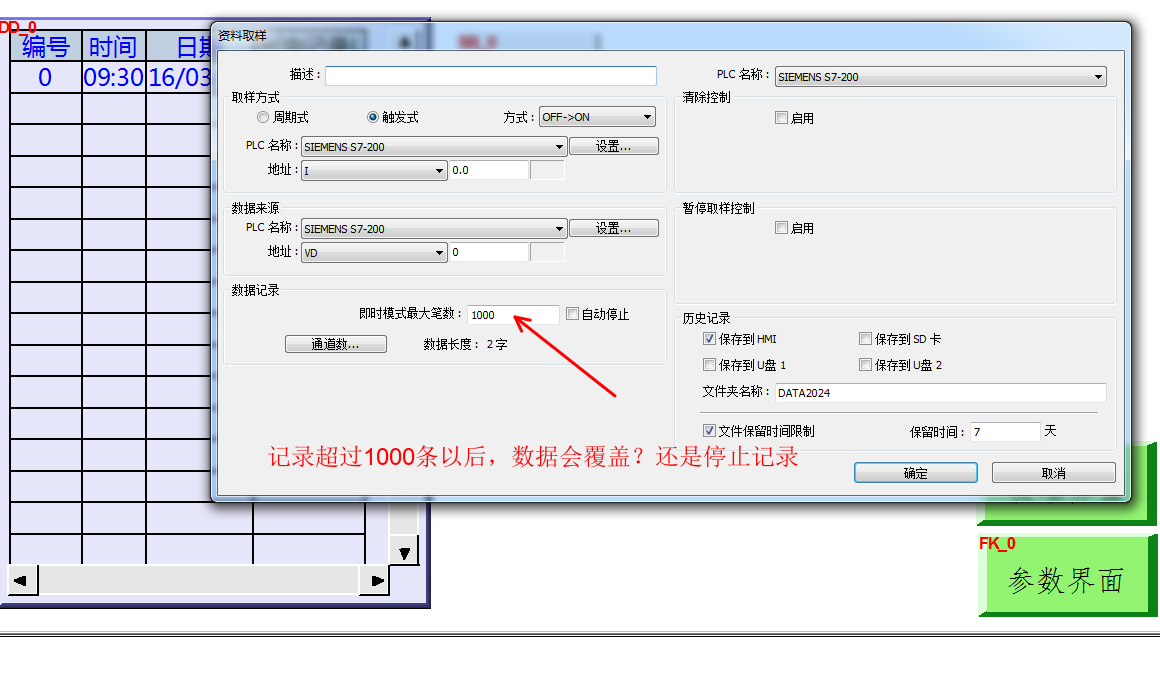 剛開始學(xué)習(xí)這個(gè)資料取樣功能,目前可以實(shí)現(xiàn)表格數(shù)據(jù)的自動(dòng)記錄,我看說明是可以記錄1000條信息,如果記錄到1000條消息,不清楚的話,新記錄是覆蓋呢,還是停止記錄了?謝謝 [atta