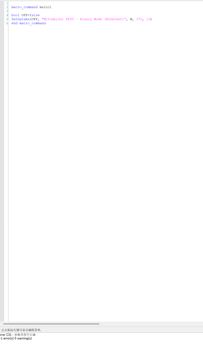 SetDataEx(OFF, "Mitsubishi FX5U - Binary Mode (Ethernet)", M, 370, 1)