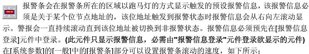 在[編輯]/[系統(tǒng)參數(shù)]/[一般]中設(shè)置報(bào)警條的滾動(dòng)顯示速度。