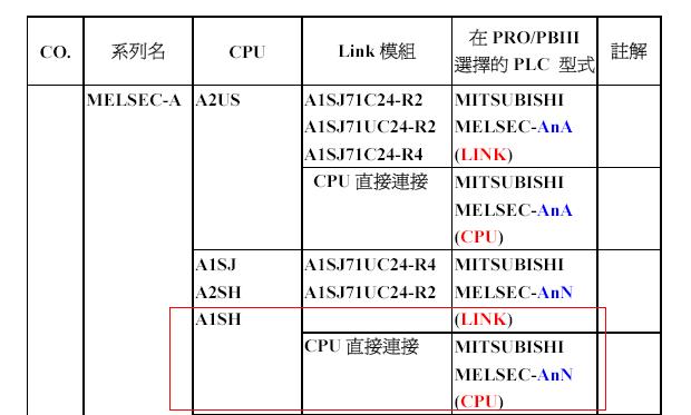 在PRO/PBIII中PLC類型選擇melsec-AnN(CPU)