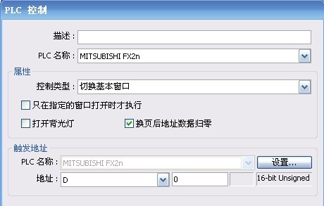 在元件---PLC控制---新增---切換窗口控制設(shè)置