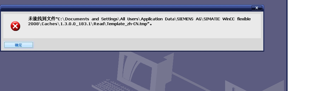 1.出現(xiàn)問題如下:未找到文件c:\Documents and settings\AII Users\ApplicationData\SIMENS AG\SIMATIC WinCC flexible 2008\Caches\1.3.0.0_183.1\Read\Template_zh-CN.TMP