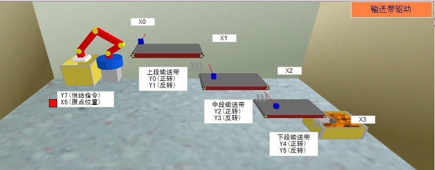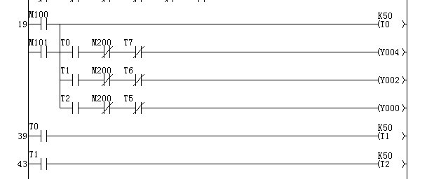 要求:X20開始的時候,。三條輸送帶順序開Y4-Y2-Y0,中間定時5秒