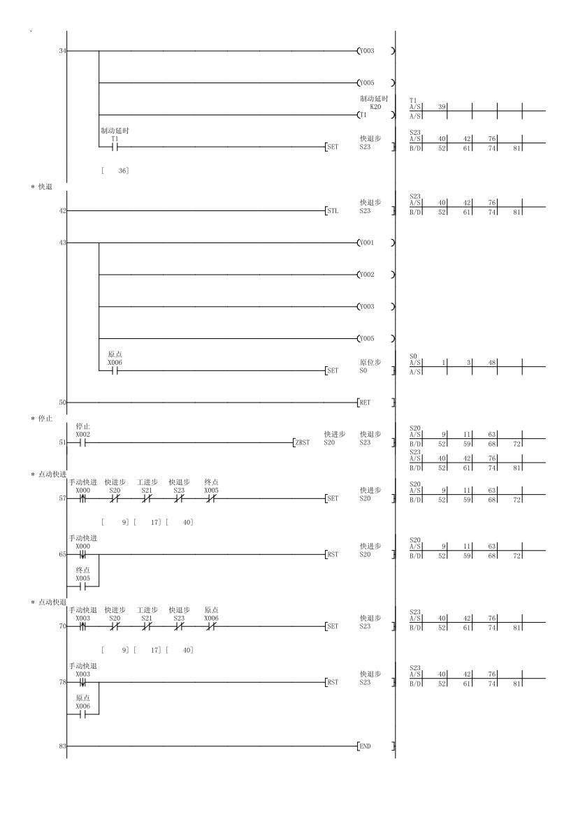 我是新手用步進命令編寫的自動工作部分,用置位和復(fù)位編寫的手動部分。我用仿真做過前3條用我的程序可以實現(xiàn)但是第4條不行設(shè)備在快進中按快進按鈕會發(fā)生干涉此時松開快進按鈕設(shè)備會停機,自己想了好久不知道如何解決?