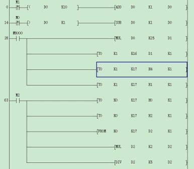 我用三菱的FXON-3A模塊的一路模擬量輸出0-10V(通過觸摸屏給定)的電壓信號,一路模擬量輸入信號采集0-10V的溫度信號,并在觸摸屏中顯示溫度0--100度。現在我的程序只有輸出電壓信號,對輸入的電壓信號不能在觸摸屏中顯示。我初步分析是程序有問題,因為只有一路輸入的時刻可以在觸摸屏上顯示溫度,當有輸入和輸出時,只有輸出有信號。請高手幫我分析下。