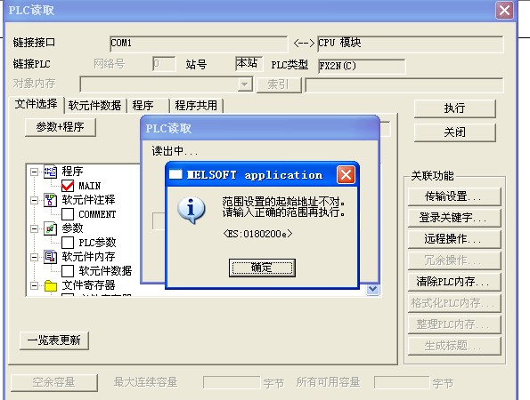 嘗試上傳程序。測試通訊正常,PLC參數(shù)可以上傳。但是上傳程序的時候