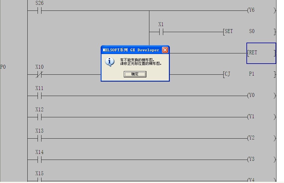 三菱的子程序結(jié)束,順控指令步結(jié)束等都需要直接在母線中直接寫。報(bào)警信息已經(jīng)直接給你指在問題哪里了,修改就可以變換。
