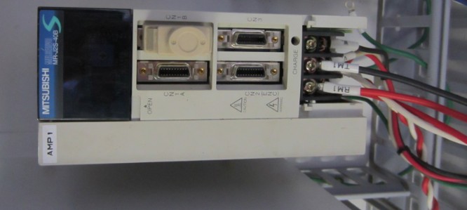 三菱A系列 CPU,一個定位模塊AD75M1,控制一個絕對式伺服。
