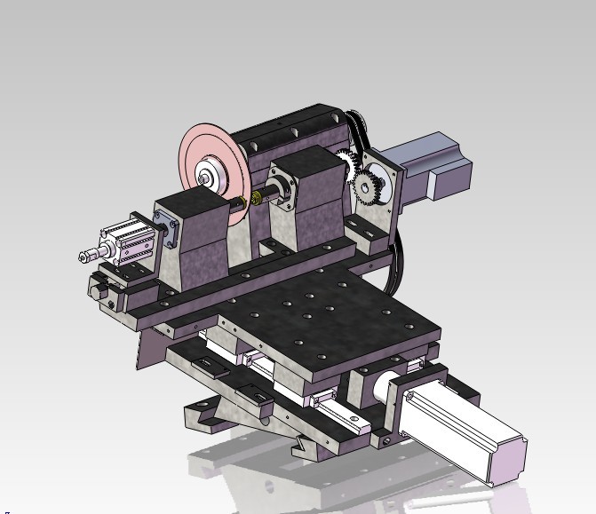 圖中后面的那個大圓是個砂輪,砂輪兩邊是夾住產品的夾具,產品靠左邊的氣缸頂住在右邊的夾具上,右邊的夾具連在伺服電機上,然后伺服電機轉動產品靠近砂輪切割,整個夾具和伺服電機固定在下面的底座上,底座又是靠另外一個伺服電機來控制前進或后退。問題是如何把夾住的一個圓柱形產品切割成外形是方形或橢圓或跑道形的產品.如果有高手能做到(用三菱PLC,10000元酬勞)請聯系我:13710629462 周生.廣州誠達機械廠.謝謝大家!